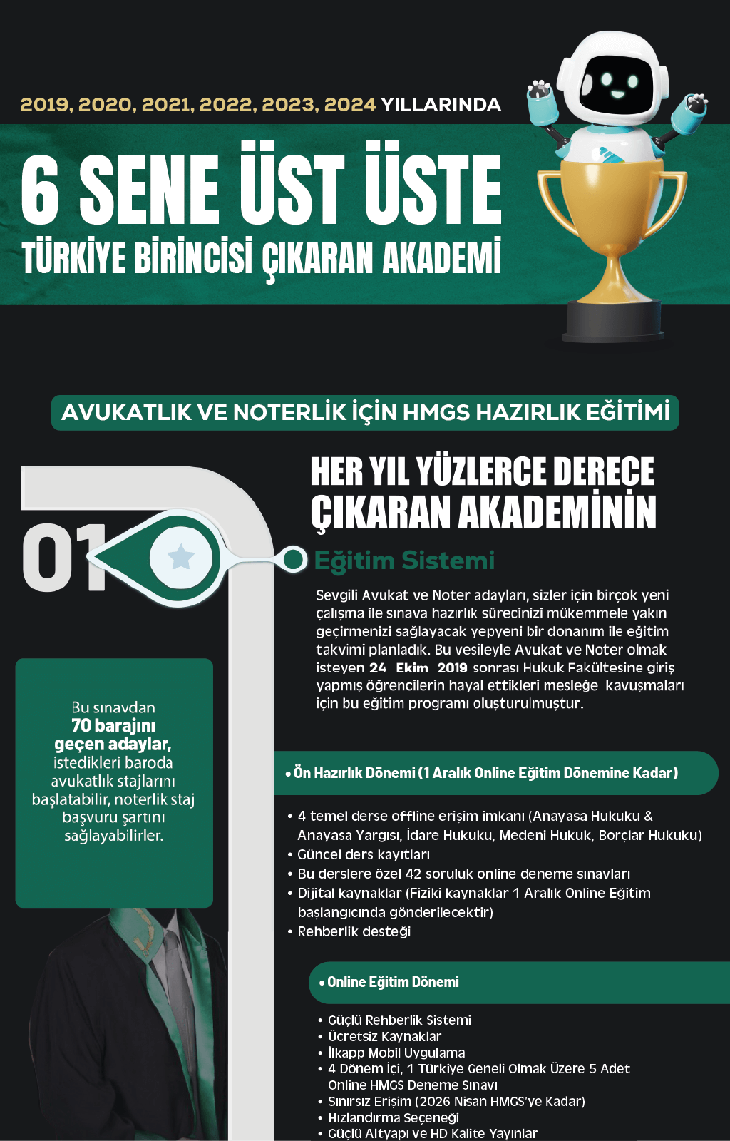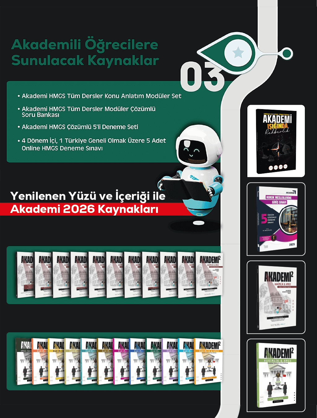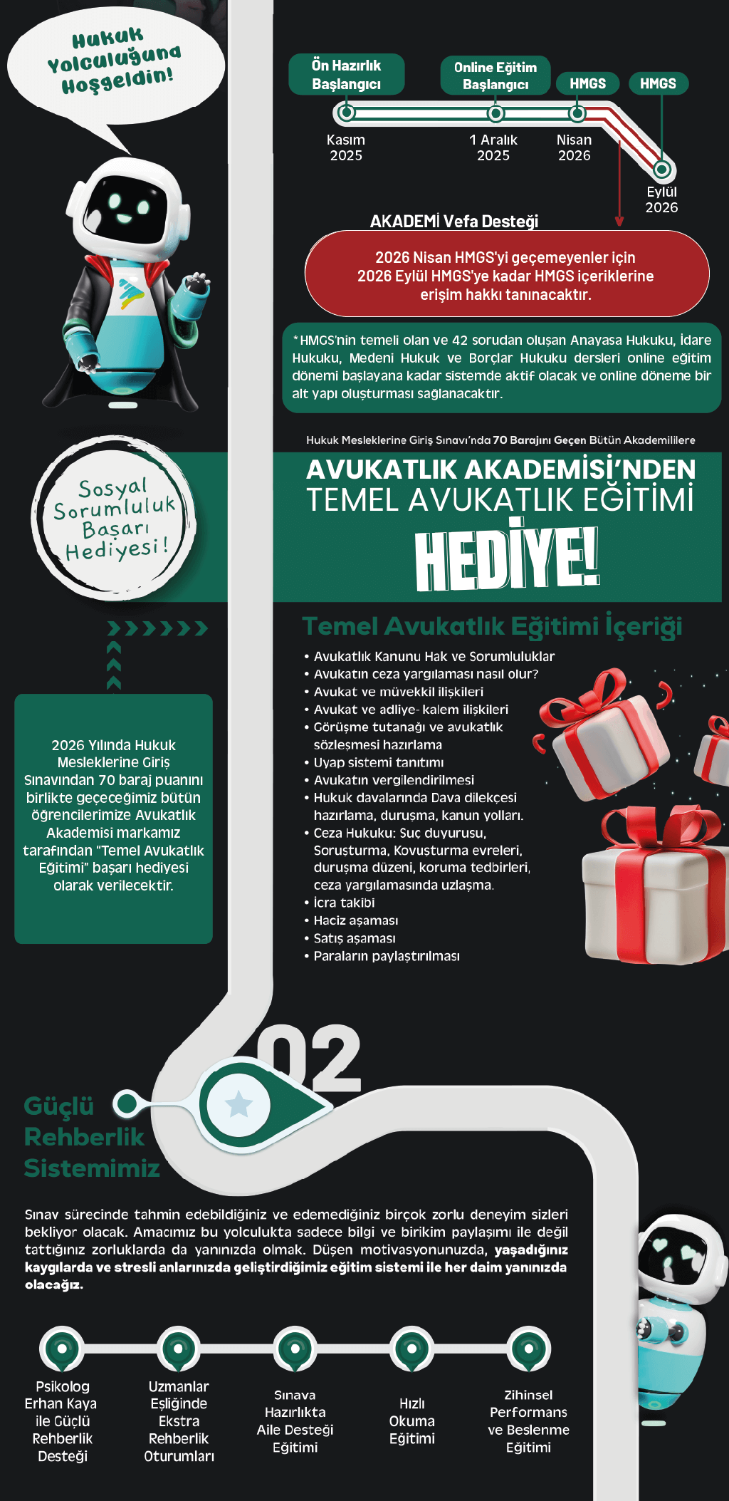 24 Ekim 2019 tarihi sonrasında fakültesinden mezun olan bir öğrenci eğer Hâkim/Savcı olmak istiyorsa, öncelikli olarak HMGS’ye girecek ve 70 baraj puanını geçecektir. Bu sayede Hâkim/Savcı Yardımcılığı Sınavına girme hakkı elde edecektir. Dolayısıyla Hâkim/Savcılık mesleği için 2 aşamalı bir sınav var diye düşünebiliriz. Hâkim/Savcı Yardımcılığı ve mesleğe dair merak edilen her konuda Akademi danışmanlarından destek alabilirsiniz.