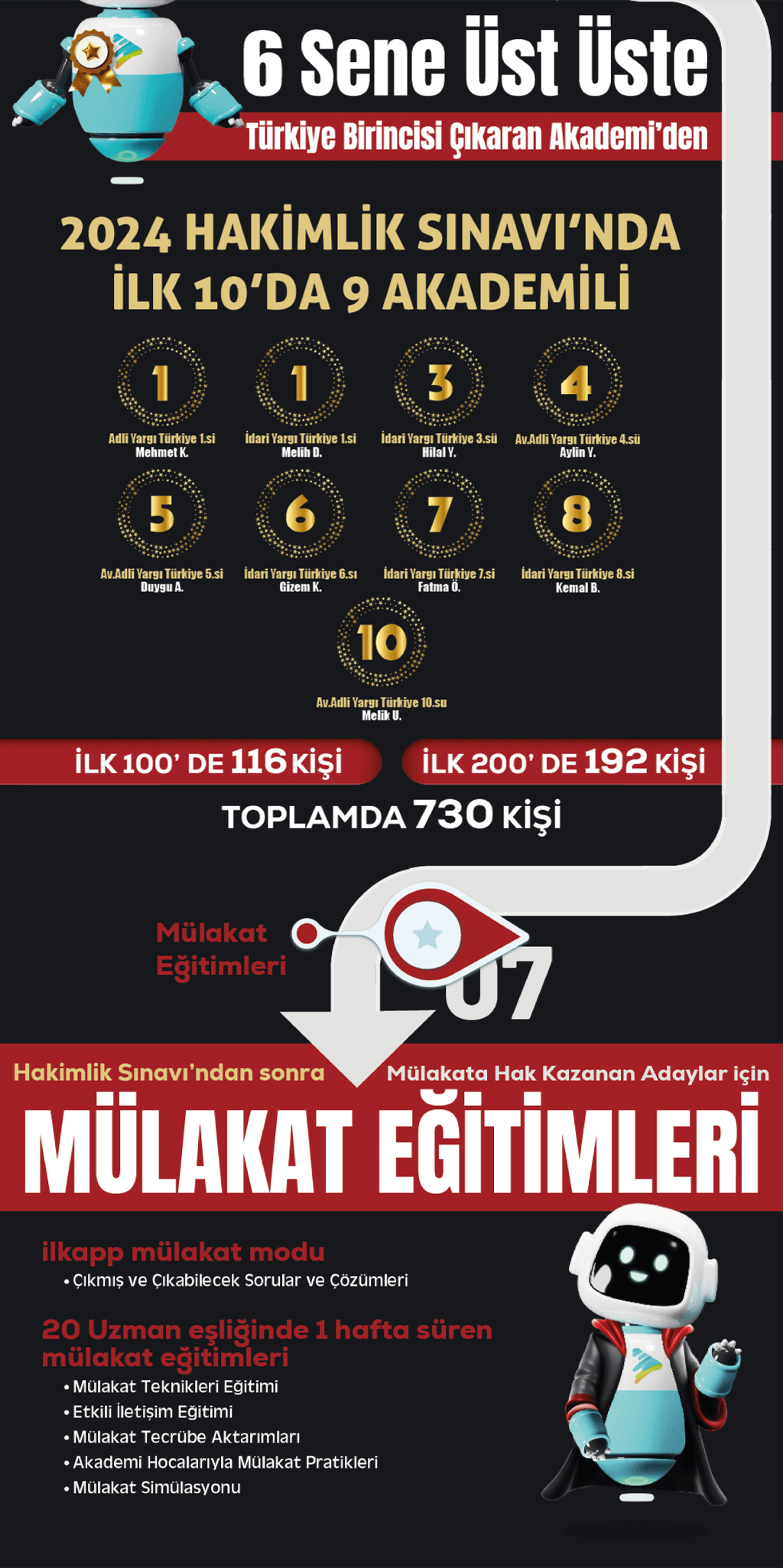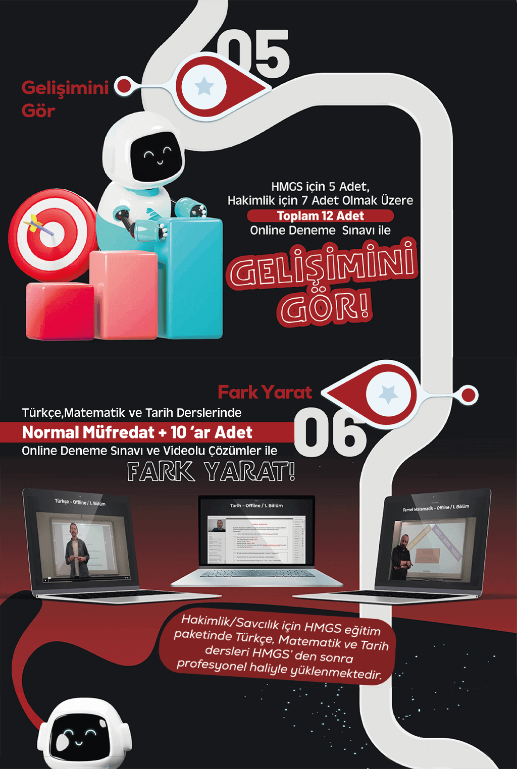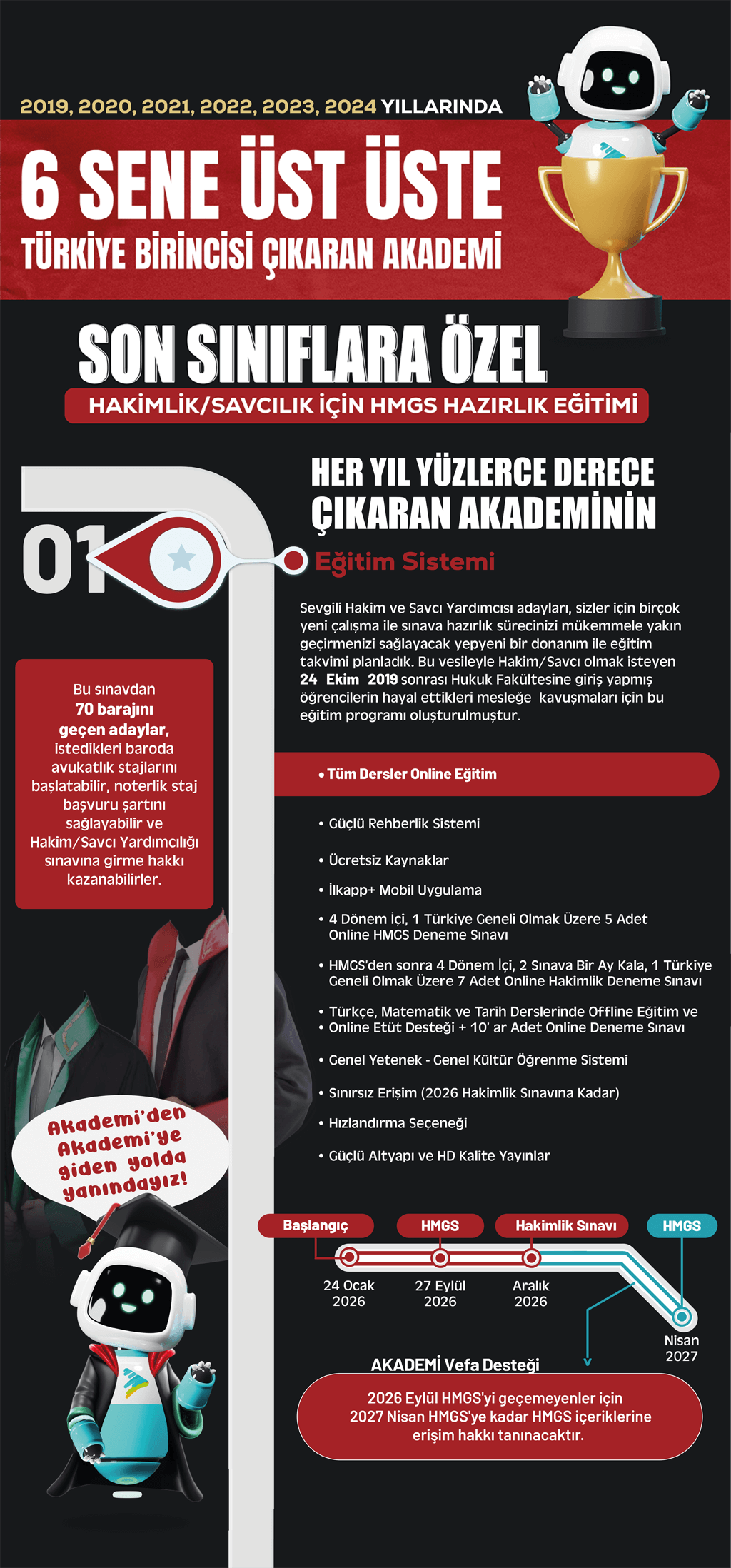 24 Ekim 2019 tarihi sonrasında fakültesinden mezun olan bir öğrenci eğer Hâkim/Savcı olmak istiyorsa, öncelikli olarak HMGS’ye girecek ve 70 baraj puanını geçecektir. Bu sayede Hâkim/Savcı Yardımcılığı Sınavına girme hakkı elde edecektir. Dolayısıyla Hâkim/Savcılık mesleği için 2 aşamalı bir sınav var diye düşünebiliriz. Hâkim/Savcı Yardımcılığı ve mesleğe dair merak edilen her konuda Akademi danışmanlarından destek alabilirsiniz.