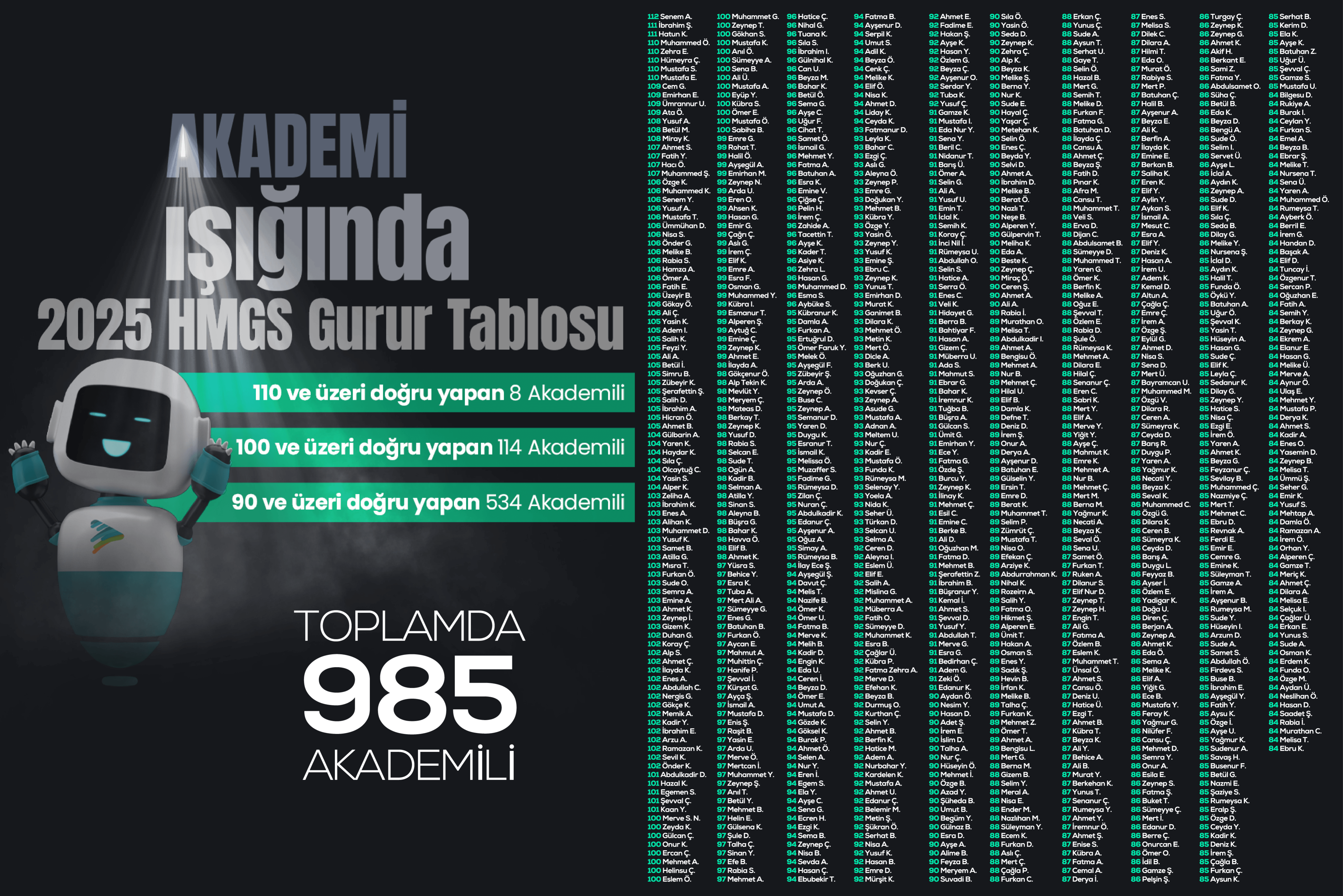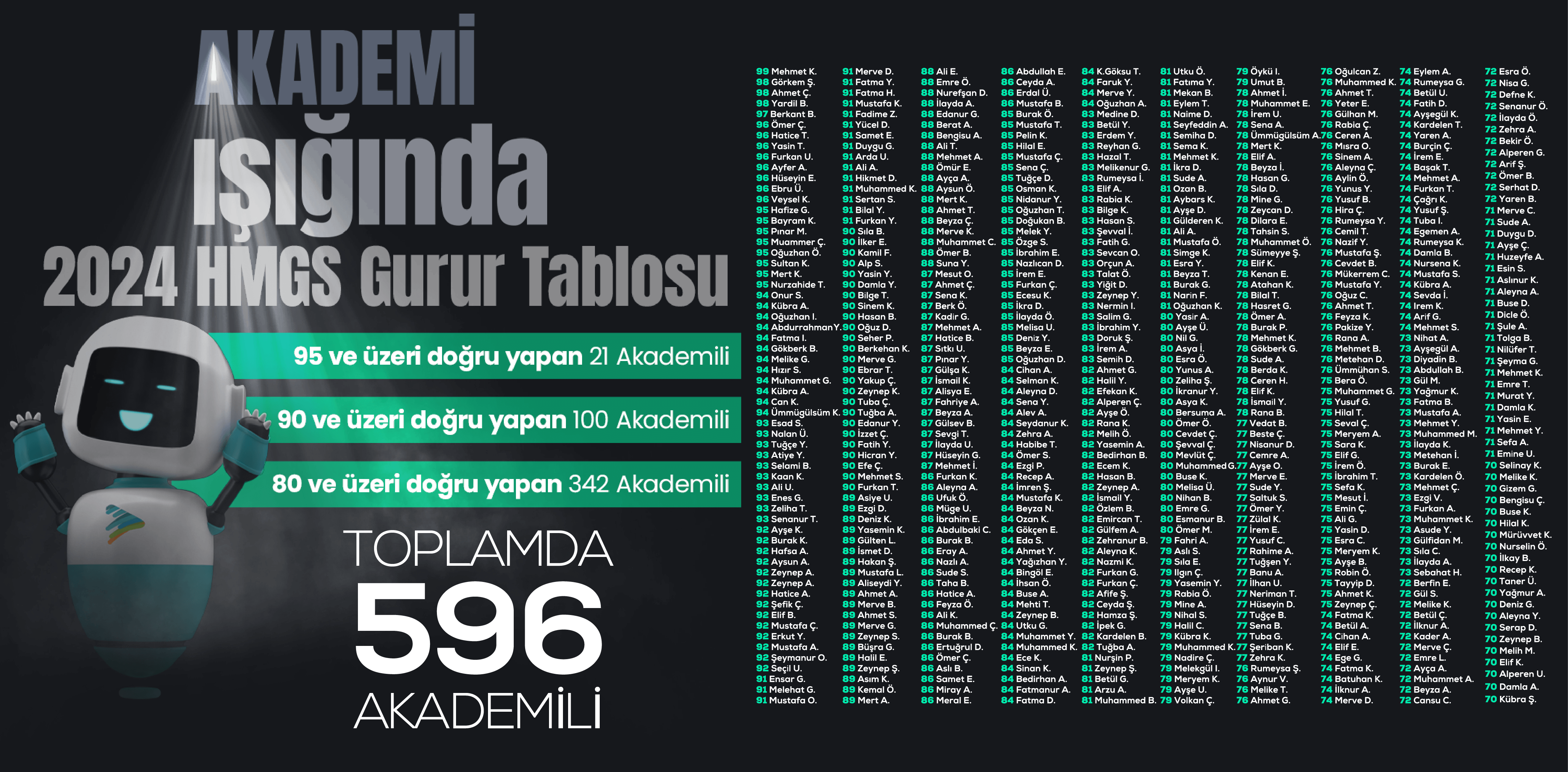 2019, 2020, 2021, 2022, 2023 ve 2024 Türkiye Birincisi ve yüzlerce derece çıkaran Akademi kalitesi.